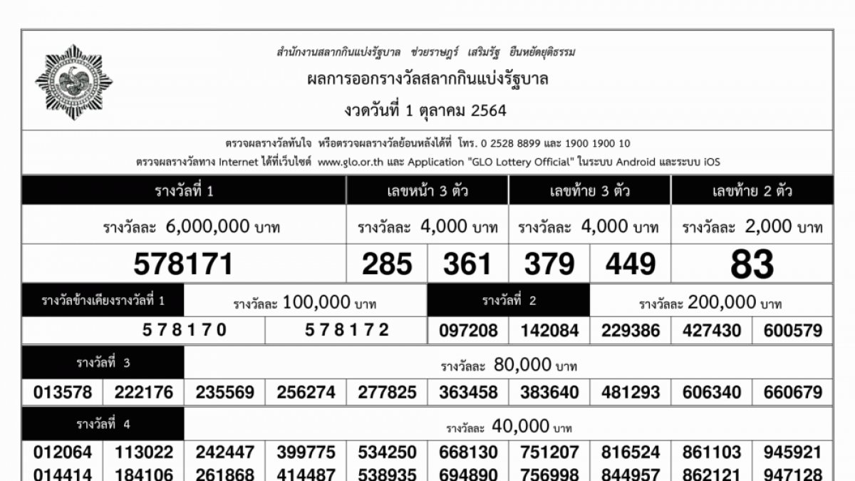 ตรวจสลากกินแบ่งรัฐบาล ตรวจหวย งวด 1 ตุลาคม 2564.